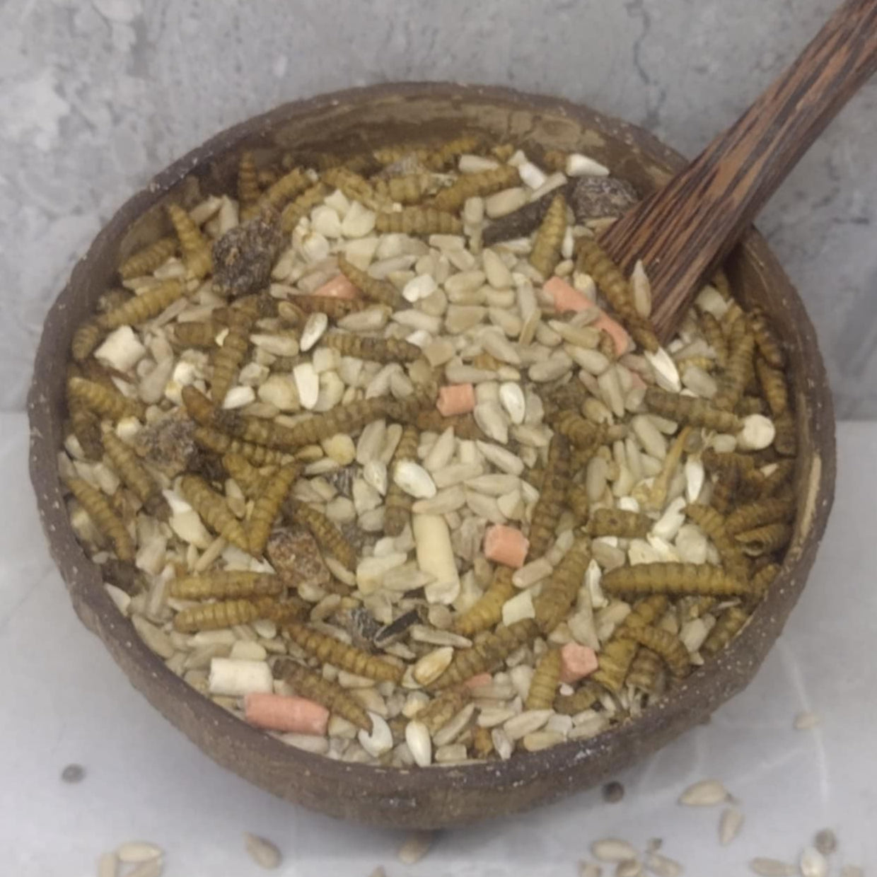 Sunflower Hearts, Safflower Seeds, Peanut Granules, Berry & Mealworm Suet Pellet Mix, Hemp Seeds, Organic Dried Apricots, Calciworm